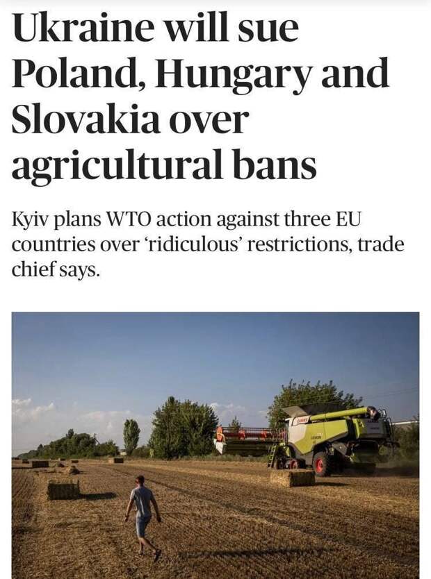 Королева Евро-Рейха госпожа Урсула охренела до такой степени, что Еврокомиссия подаёт в суд на Польшу, Венгрию и Словакию за то, что они не закупают достаточно зерна у Украины. То есть государства ЕС сами оказывается не имеют права решать, что, у кого и по какой цене они хотят купить!